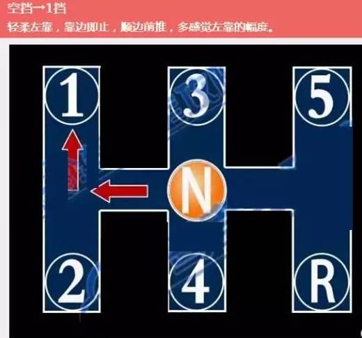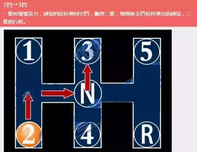 注意:车型不同挡位图不同,本文中后倒挡在5挡的下面,根据自己所学车型进行挂挡练习。
